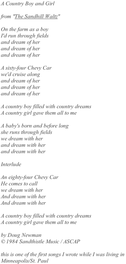 Doug Newman Music - page two Doug Newman Albums Doug Newman Song Lyrics Doug Newman : Calendar Doug Newman : Contact Doug Newman photos Doug Newman : Press, Reviews Doug Newman: News Guestbook Doug Newman Music - page three Doug Newman Links links